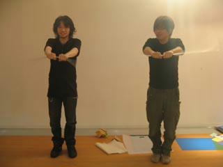 上下に揺らす運動をしています。結構きつい、という声が^^