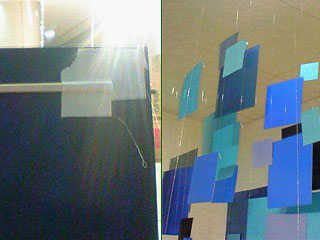紙を選んで画面に通してチェックして、紙を切って穴をあけてテグスを通して吊り上げる。